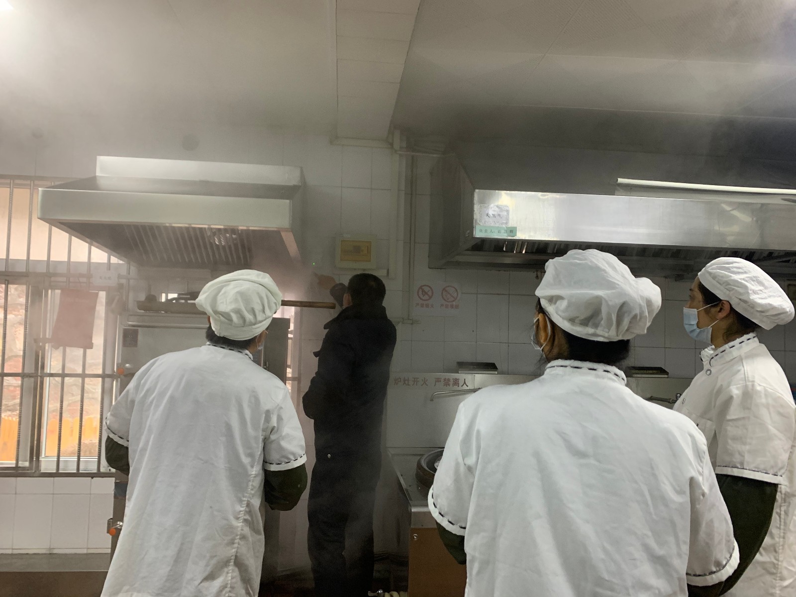 培训结束后,张教员来到食堂进行实地操作演练,向食堂师傅演示了灭火器灭火器及灭火毯的使用方法,并通过食堂的情景演练强化了食堂人员对灭火器及灭火毯的实践操作。