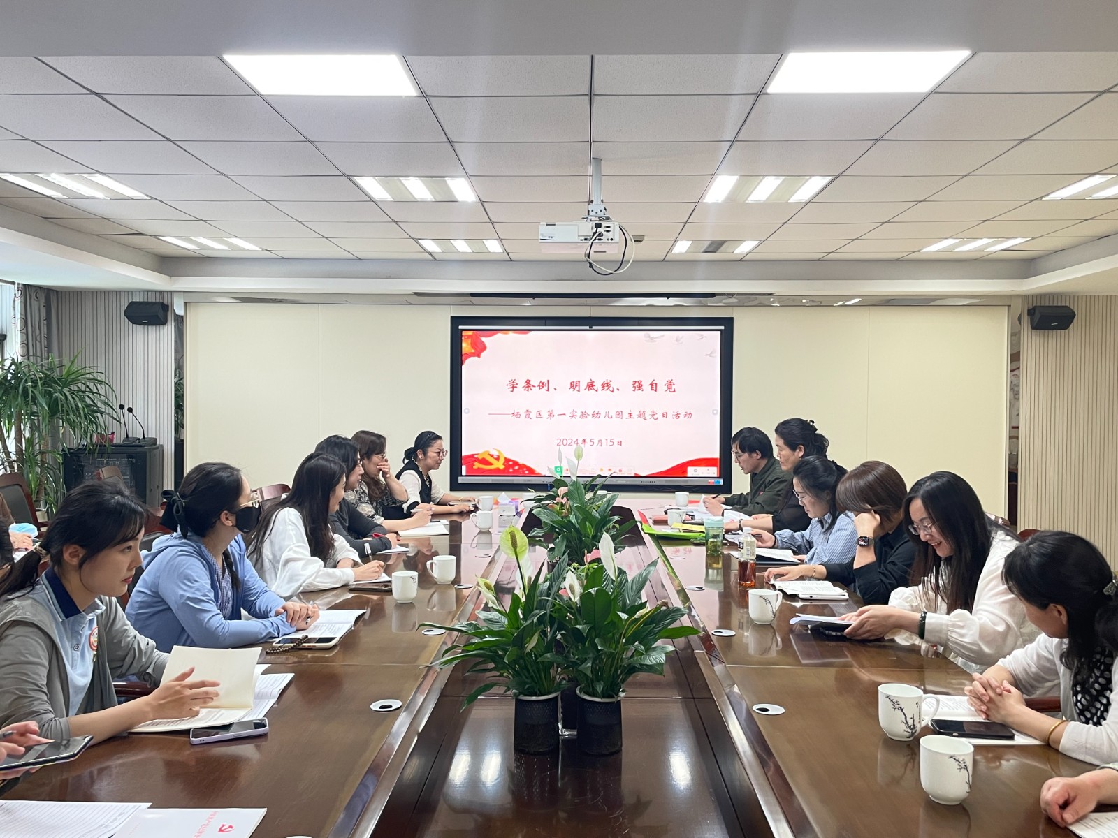 为深入学习贯彻落实习近平新时代中国特色社会主义思想,学习党的二十大精神,加强党员主题教育,激励党员教师,我园于2024年5月15日组织全体党员开展“学条例、明底线、强自觉”主题党日活动。