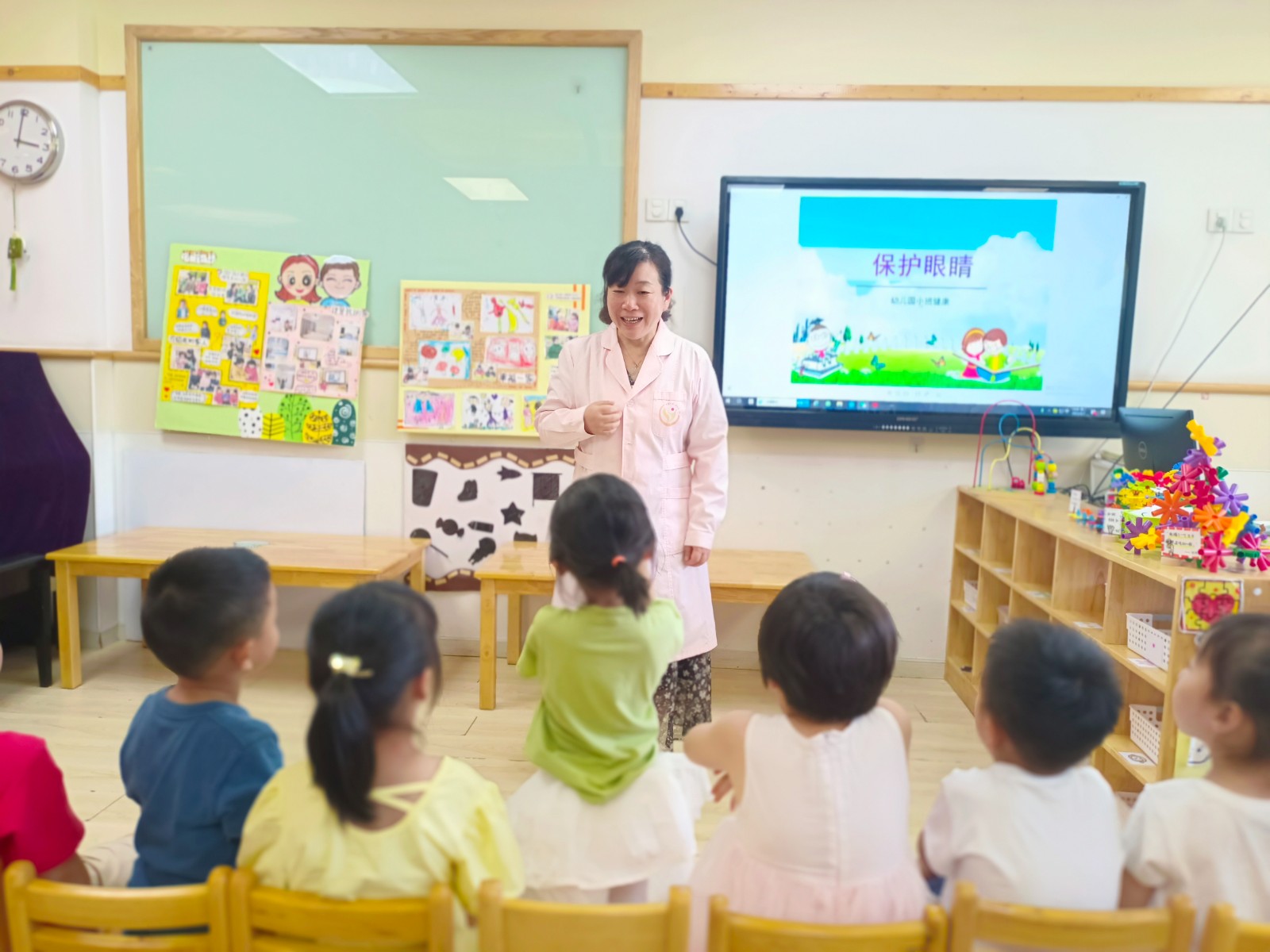 同时,尧辰园各班老师根据幼儿的年龄特点设计了丰富的集体教学活动,以唱儿歌、听故事、看视频等多种有趣的形式,让孩子们在活动中懂得了保护眼睛的重要性,帮助孩子们在日常生活中养成爱眼、护眼好习惯。