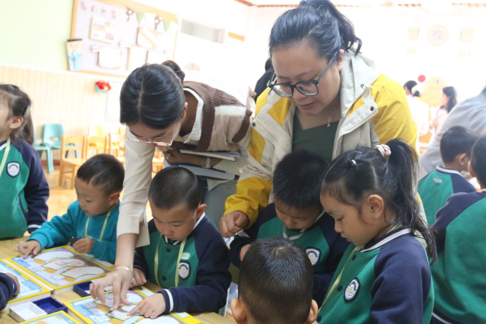 活动当天,专家团队首先深入班级,观摩了两节紧密结合幼儿园当前主题的集体教学课例。其中,中四班俞老师执教的数学活动《秋天的果园》,正是依托班级正在开展的“美丽的秋天”主题设计:课堂上,教师以秋天的果实为载体,通过实物观察、操作配对等环节,引导幼儿认识7以内数的意义,同步练习数物匹配、点物匹配的操作流程,让抽象的数学概念与生活场景深度融合。大三班戴老师的社会活动《马背上的民族》,则紧扣大班“我是中国娃”主题,以蒙古族文化为切入点,通过图片展示、习俗分享、互动模仿等形式,引导幼儿了解多民族文化特色;同时结合幼儿爱交往、善表达的特点,设计小组交流环节,让孩子们在相互分享中加深对民族文化的认知,潜移默化培养多元包容意识。