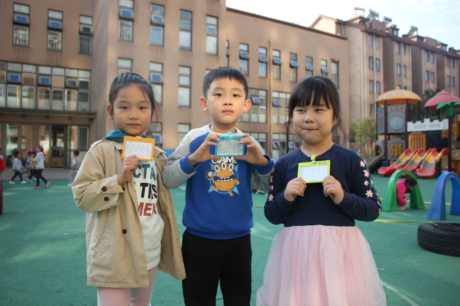 你瞧!我们每个人身上都挂着一个小小的胸卡,它可有着大大的作用呢!它是用来记录我们每天的游戏情况的。你瞧,我今天玩了这几个项目,老师都为我打了星星,说明我玩的很好哦!每周五,我就可以回顾我这一周是否坚持努力锻炼,是否有了新的进步。