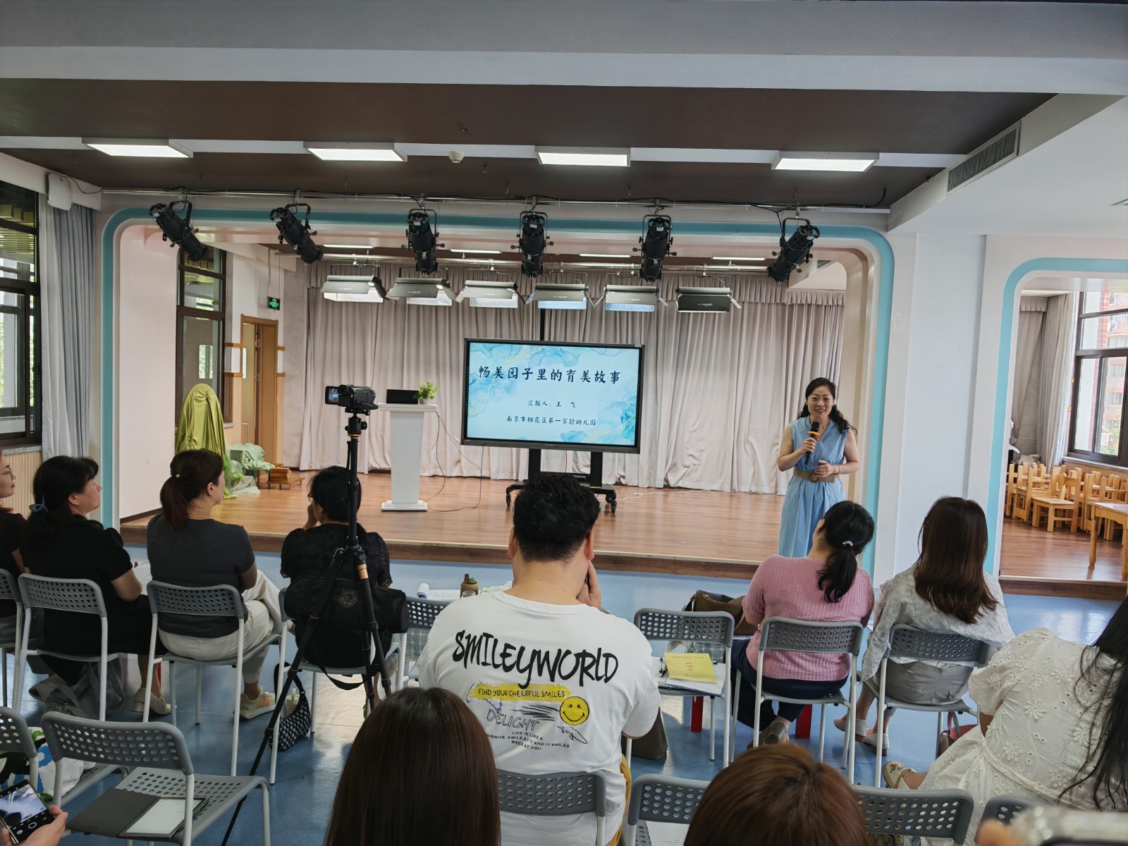 最后,王飞名师工作室领衔人王飞园长以《在美的生活中生长》为题,作了一场见解深刻的主题汇报。她介绍了南京市栖霞区第一实验幼儿园的“生活美育”理念,旨在让教育回归生活本质。王园长鼓励与支持幼儿在自主、浸润、体验、共生中获得成长,并提出了“在美的生活中生长”的教学主张。同时她也强调,真正的教育在于引导幼儿在充满美感的日常生活和游戏中自在、自然地生长。
