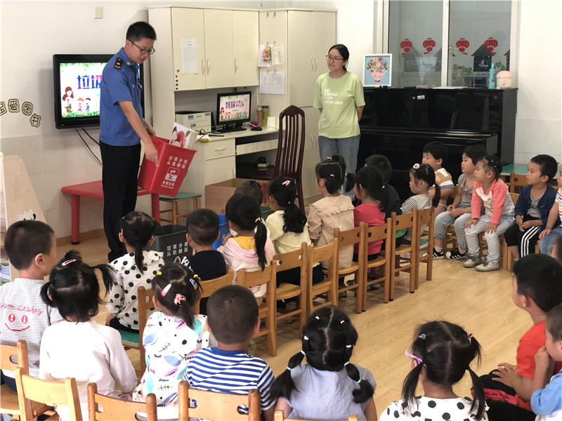 大三班邀请袁梦的妈妈带领南京环保公司的老师们进班为小朋友们宣讲关于垃圾分类的小知识,加深了小朋友们对垃圾分类的认知。
