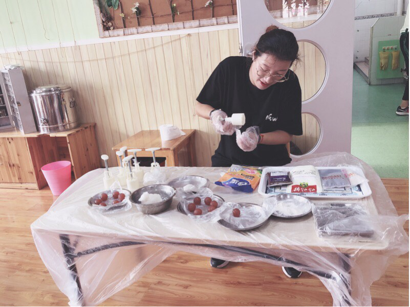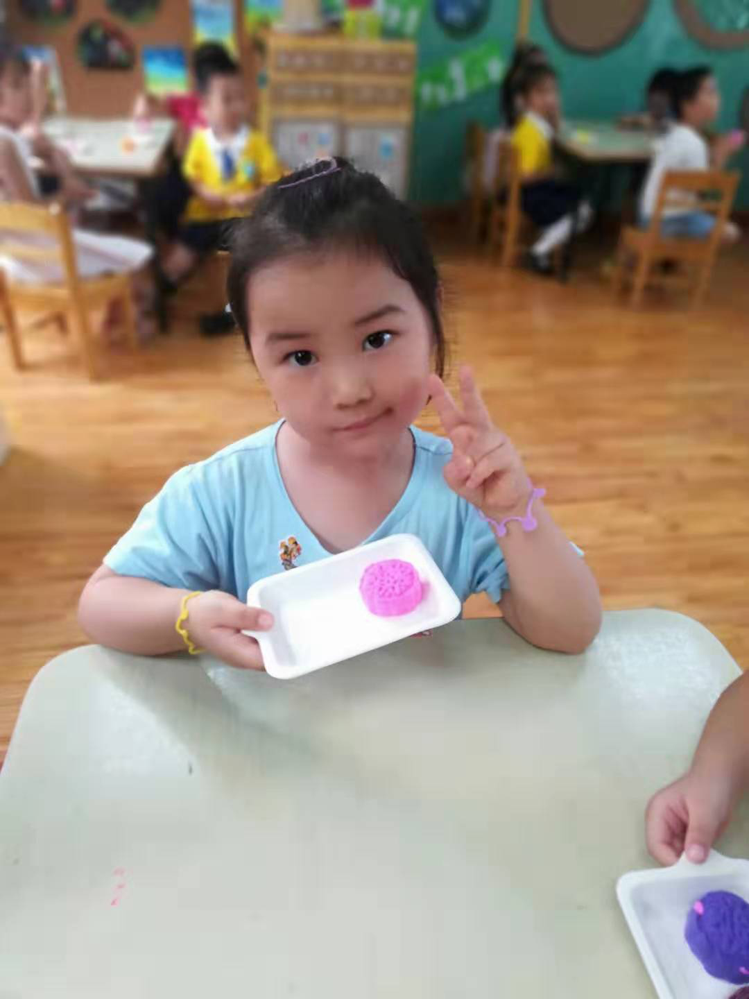 中一班刘嘉卉妈妈在中秋节到来之际,带领孩子们了解我们中国的传统节日——中秋节,现场和孩子们共同制作月饼。
