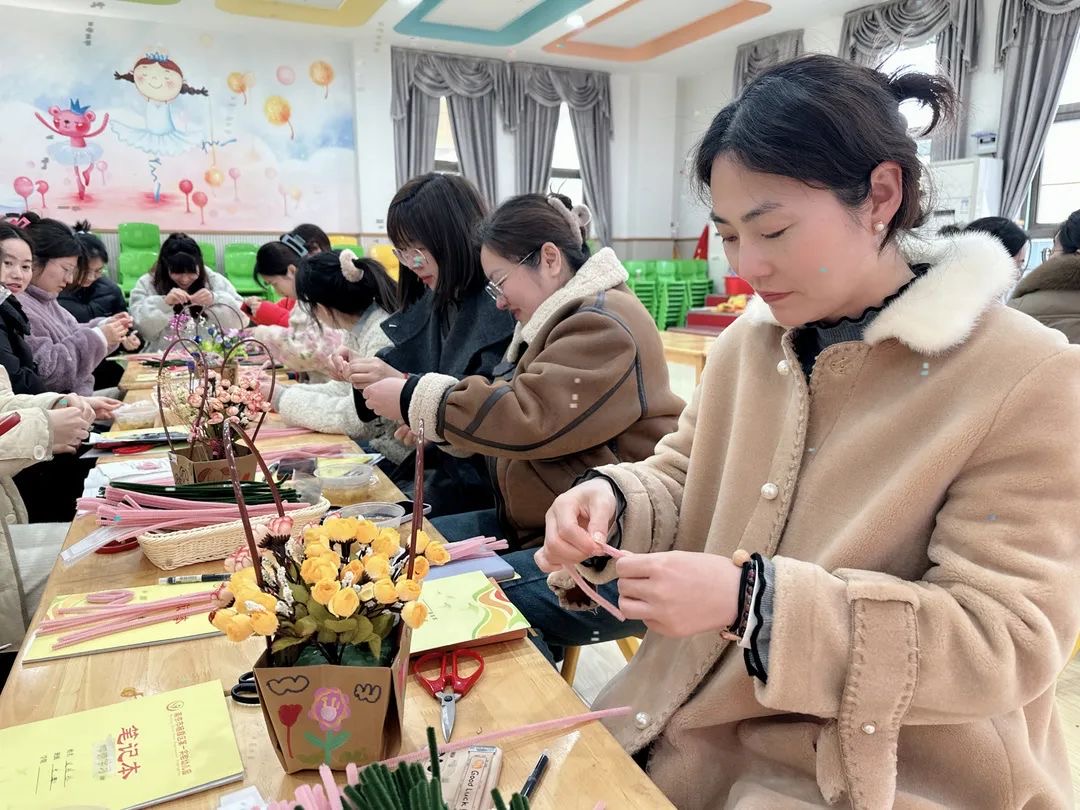 我们的老师们今天怎样庆祝的呢?瞧,她们也收到来自园长妈妈礼物啦——一顶可爱的小帽子。这不,我们心灵手巧的老师们还齐聚在一起用毛根制作郁金香花,“美”的体验,大家的心情也都美美哒!