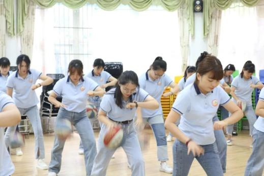 随后,陈教练认真讲解了单手拍球、双手拍球、行进间双手拍球、双手高低拍球等动作技能要点,带领教师进行实操训练。这样由易到难、循序渐进的培训形式,让老师们更好的了解自身的水平阈限,掌握技能技巧,充分体验篮球运动带来的乐趣。