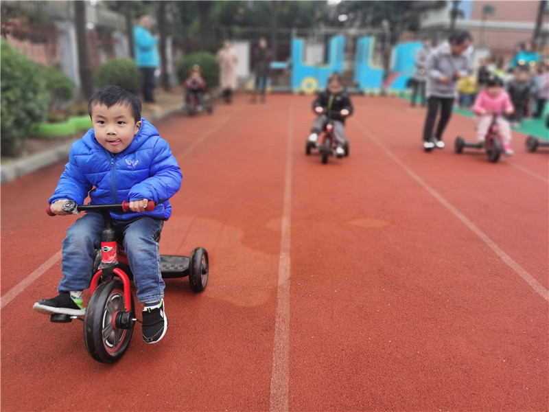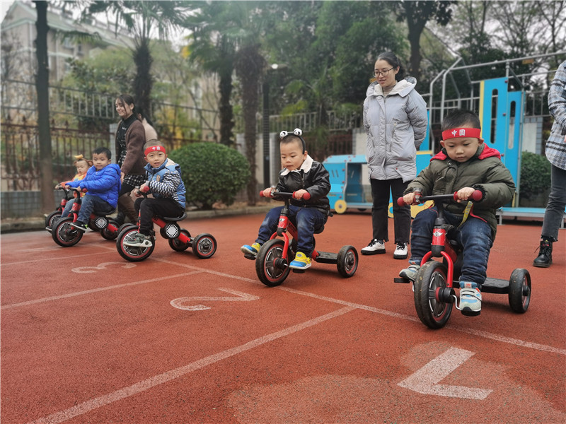 期待已久的小班骑小车比赛就要开始啦!随着裁判老师一声令下,比赛正式开始啦。瞧!斗志昂扬的小选手们卯足了劲,双脚灵活的踩着踏板,像一个个骑车的能手,一鼓作气的向终点驶去。