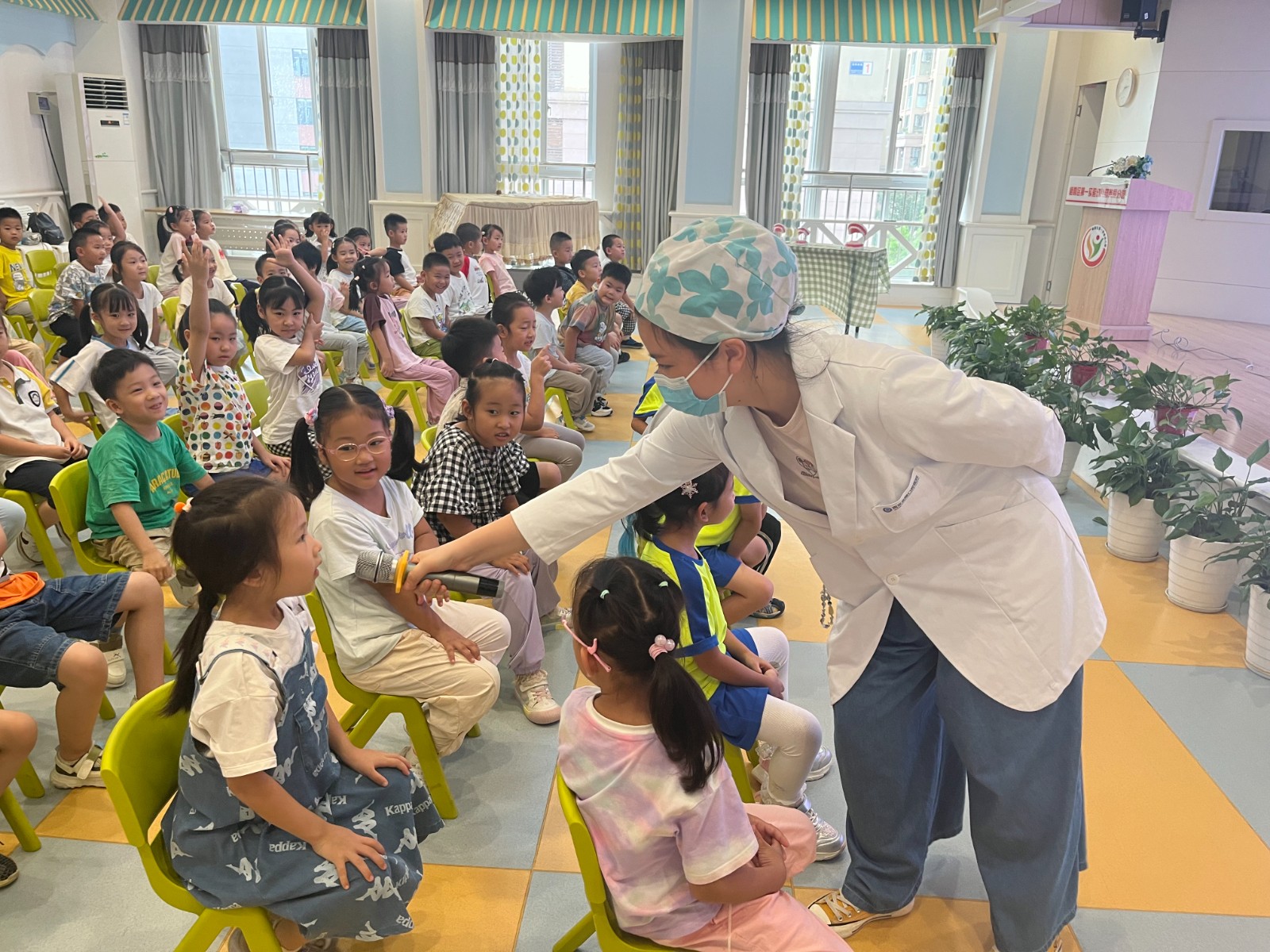 尧辰园特别邀请的金陵口腔医院的专业医生来到了现场。金医生和宋医生用生动有趣的语言为了让小朋友们更好地掌握正确的刷牙方法。小朋友们听得聚精会神,不时地举起小手提问。牙医们耐心地解答着每一个问题,让孩子们对保护牙齿有了更深刻的认识。