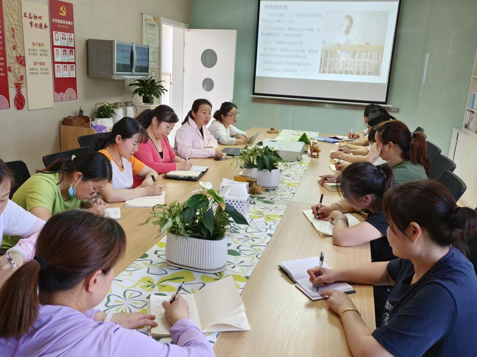 培训中,保健刘老师围绕防跌倒、防蚊虫叮咬、防中暑、传染病预防等知识开展培训,针对如何科学的做好夏季幼儿护理工作,详细讲解了夏季的幼儿饮食、卫生、疾病预防等知识。刘老师强调:班级教师要合理安排幼儿的户外活动时间,注意对体弱儿的照顾,在炎热的夏季一定要培养幼儿养成良好的生活和卫生习惯,饮食宜清淡易消化食物,做好预防保健措施,就能远离疾病、安然度过炎热的夏季。培训结束后,后勤主任李芳芳,针对近期日常检查中发现的问题,提出整改建议,保育老师积极讨论,立即整改。