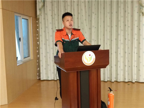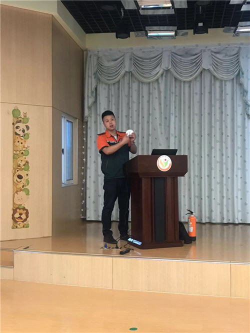 为进一步加强全体教职工消防安全意识,全力普及消防安全知识,推进校园消防安全宣传工作,2019年9月4日中午,我园邀请了安居消防中心的唐教官为幼儿园全体教职工上了一堂生动的消防知识培训讲座。