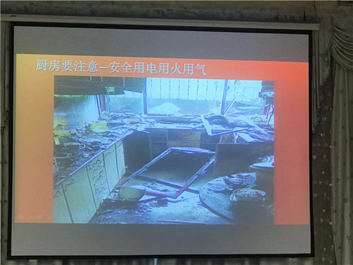 唐教官结合典型的火灾案例;讲解了初期火灾的扑救和火场逃生的基本方法以及灭火器的使用进行了现场教学,同时强调了用火、用电安全,强调火灾三分钟自救。唐教官针对家庭防火“2件宝”——灭火器、燃气泄露报警器的使用和功能进行了生动细致的讲解。