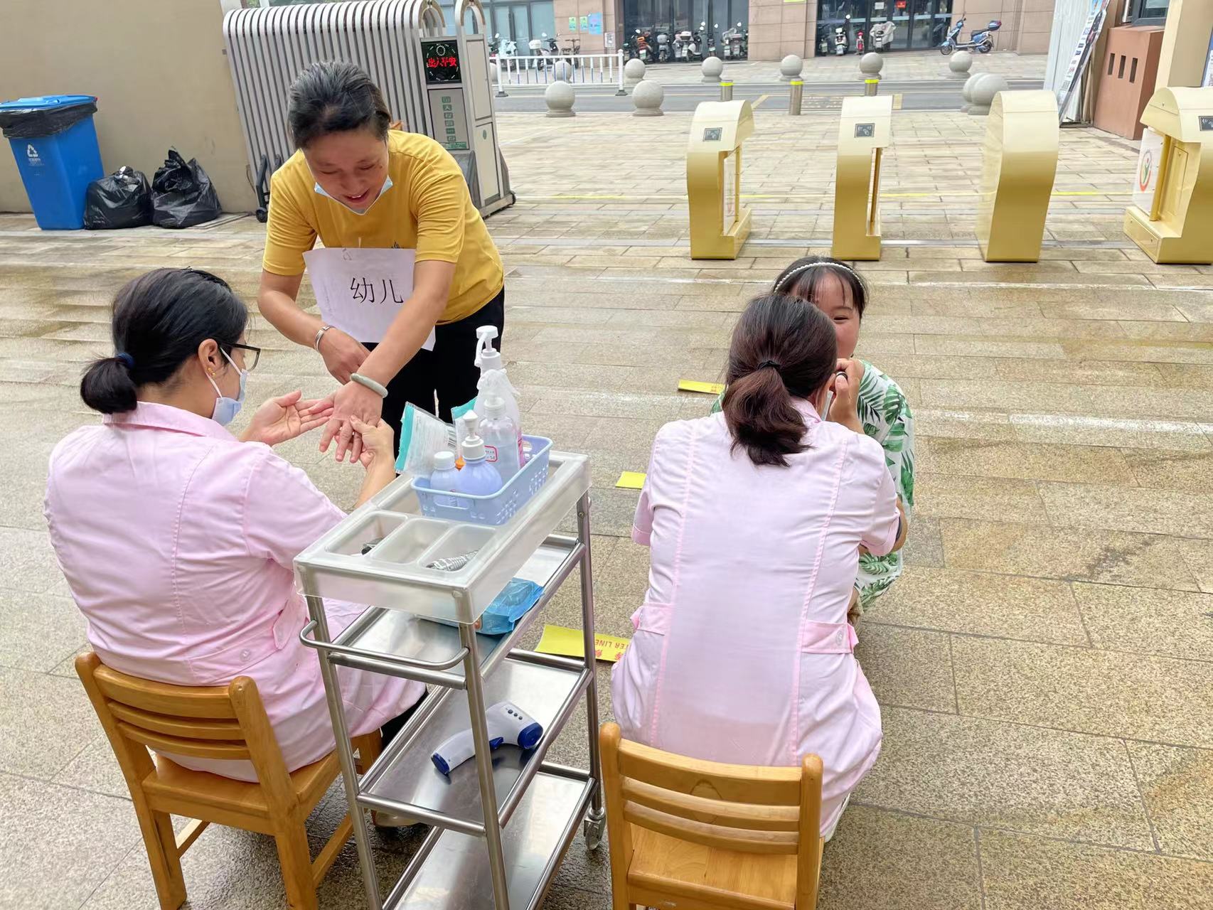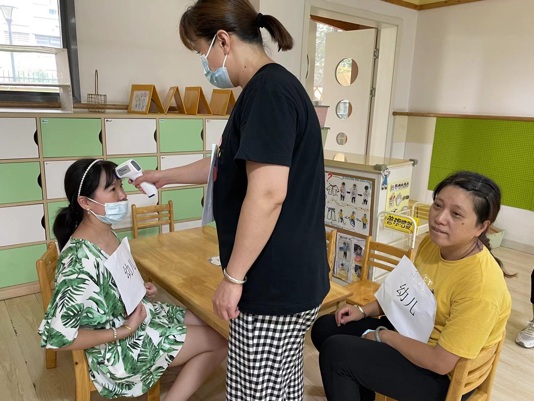 幼儿入园前,班级老师向家长收集整理幼儿及同住人苏康码、行程码、核酸报告等,再交由保健老师再次检查,确保无中、高风险区的出行史。幼儿入园时,值班老师和安保人员对幼儿进行体温测量,家长出示场所码,再由保健老师进行详细晨检,确定无异常方能正常入园。在班级门口老师对幼儿进行二次晨检,并记录晨检结果,无异常情况幼儿进入班级。如值班老师检查发现幼儿有发热、皮疹、腹痛等异常情况,由家长直接带走,到指定发热门诊去就诊。班级老师对该幼儿进行病情追踪,并做好记录。